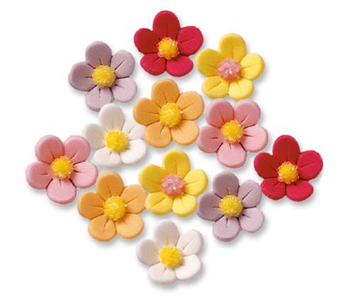 Sukkerpynt blomster i 5 farger Ø30 mm, 150 stk