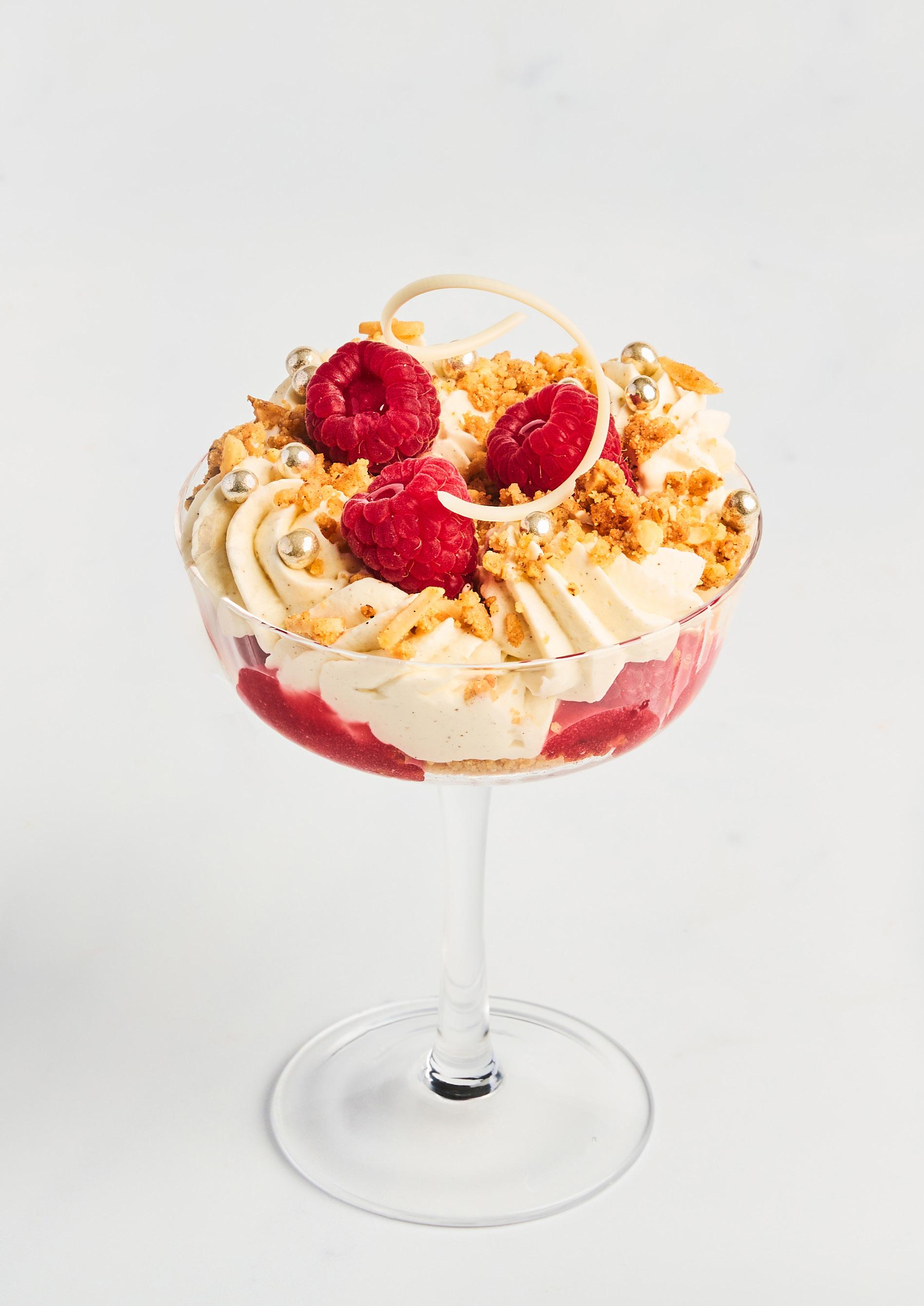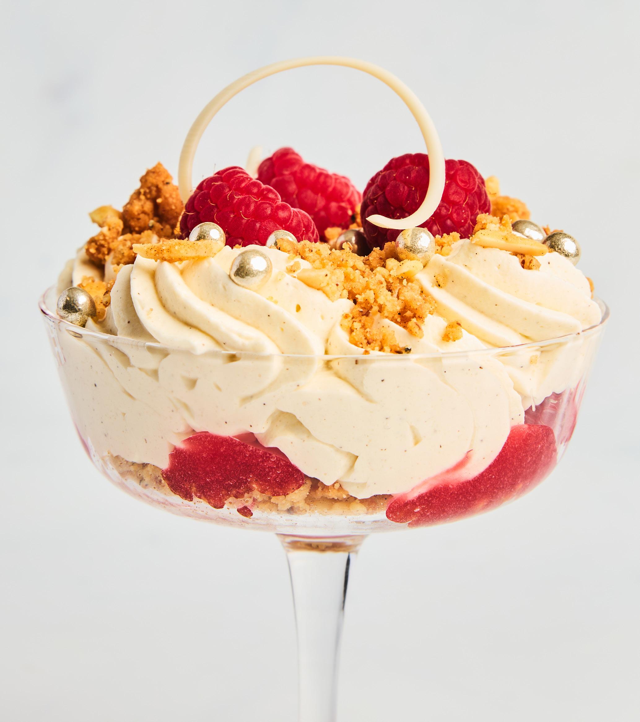 Herlig dessert toppet med en nydelig marsipancrumble