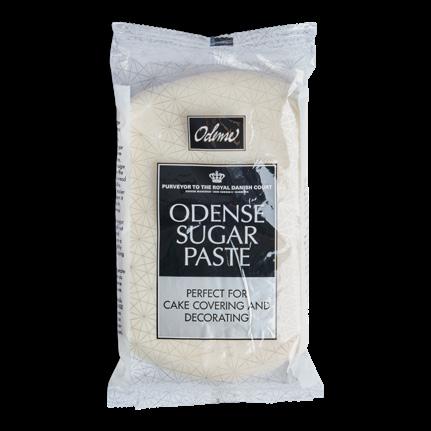 Overtrekksmarsipan med 23 % mandler, en finrevet masse med fast og smidig konsistens. En elastisk overtrekksmarsipan som er enkel å jobbe med og tåler både frysing og kjøling. Massen er stabil, og stivner raskere ved produksjon av blomster og annen pynt. Passer perfekt til punsj-rull. Odense overtrekksmarsipan finnes i mange spennende farger.