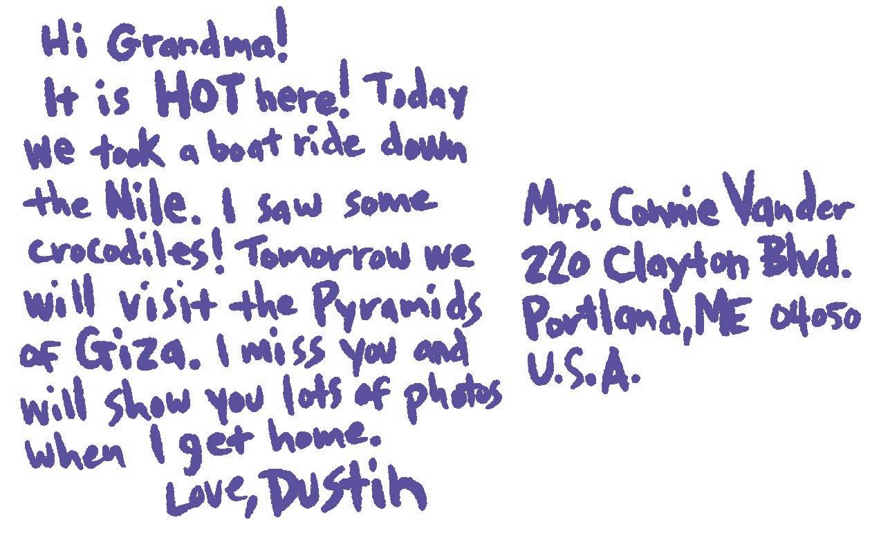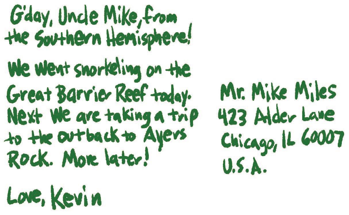 Some young travelers have sent postcards home to family in the United States, but the senders forgot to say which country they were visiting. Can you use the geography clues to determine which country each postcard was sent from?