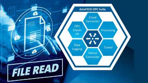 The new "File Read" function of dataFEED OPC Suite Extended V5.25 enables access to process data available via XML files. The dataFEED OPC Suite Extended is an all-in-one solution for OPC communication and cloud connectivity, providing access to controllers and IoT devices of leading manufacturers. With the new File Read functionality, the suite ensures access to brownfield PLCs, devices and machines that deliver data via XML files.