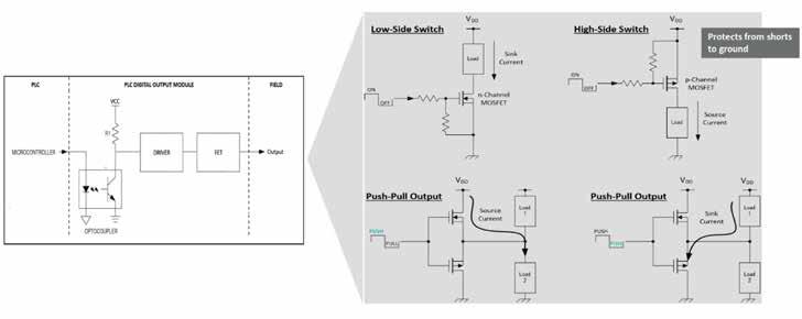 Once we start integrating DI and DO on an IC, it allows us to build products that are configurable. Here is an example of a 4-channel product that can be configured as an input or an output.