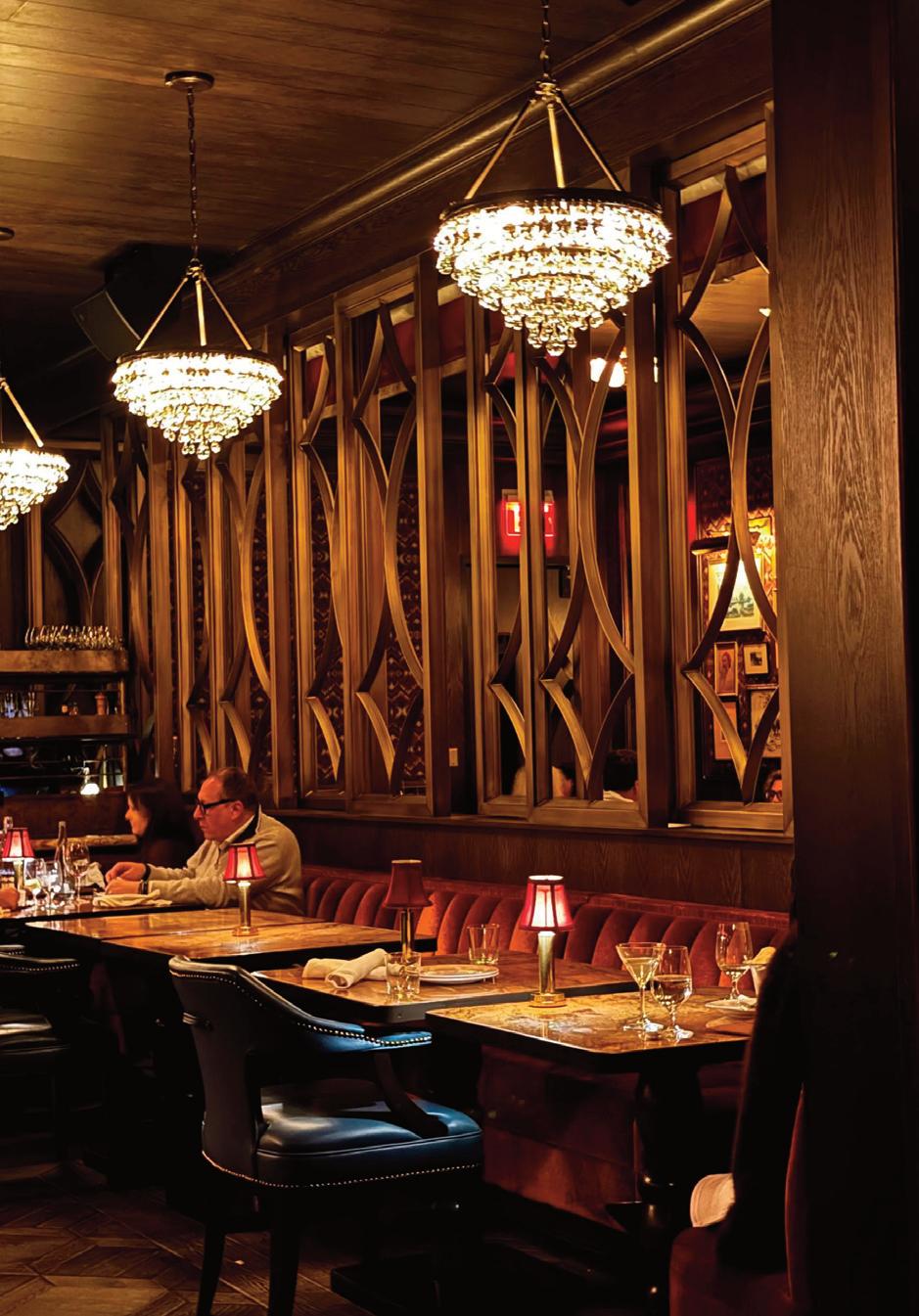 The dining room at Bavette’s Steakhouse & Bar at Park MGM pairs a Chicago-style steakhouse sensibility with a moody, speakeasy-like vibe.