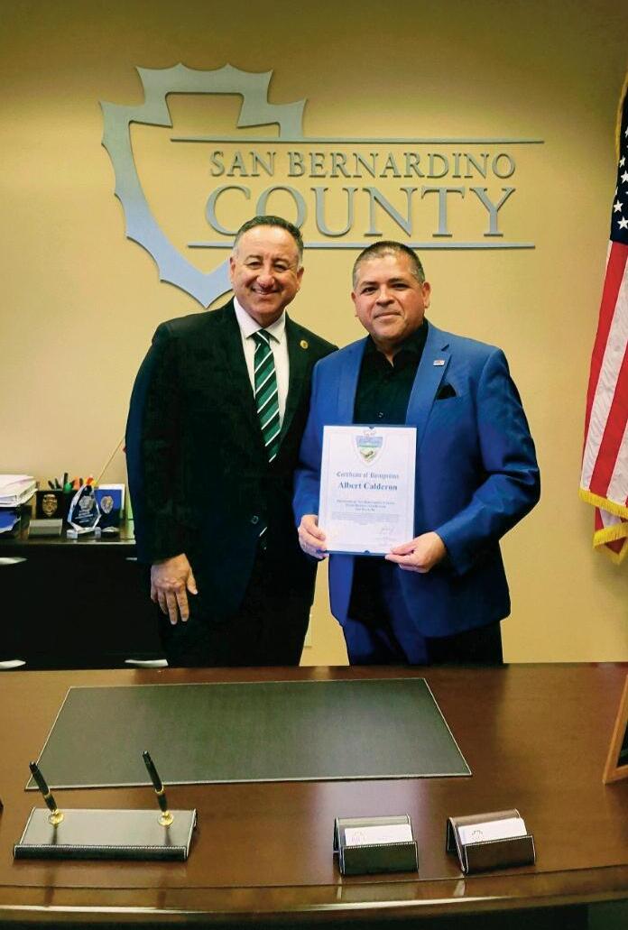SB County 5th District Commissioner & Real Estate Br oker Alber t Calder on Recognized f or Community Contributions