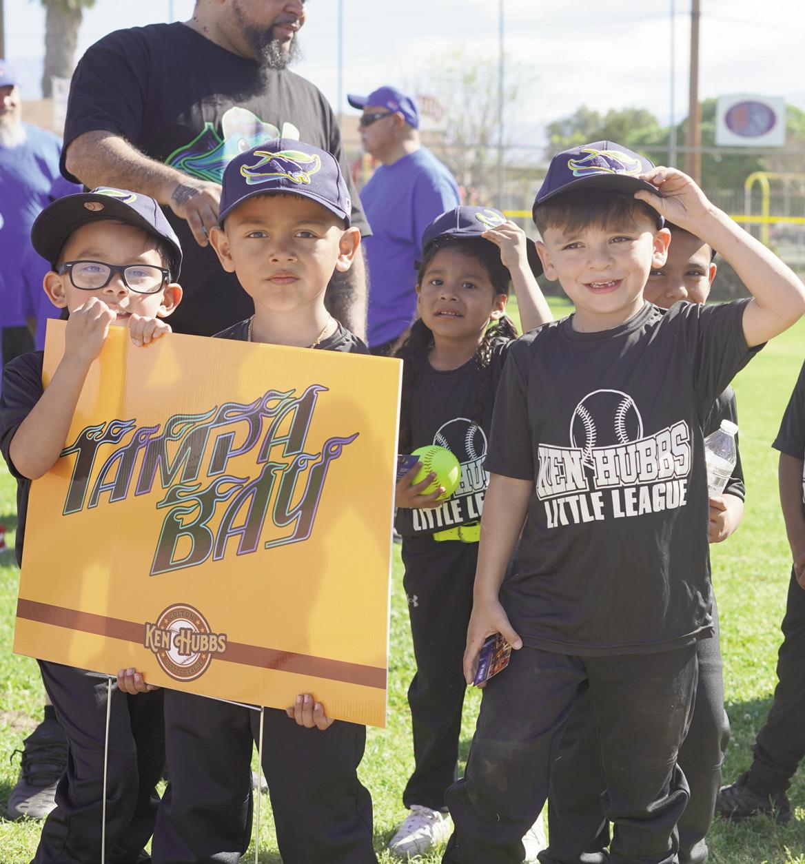 Ken Hubbs Little League players from the Tampa Bay Rays team gather on the field during opening ceremonies.