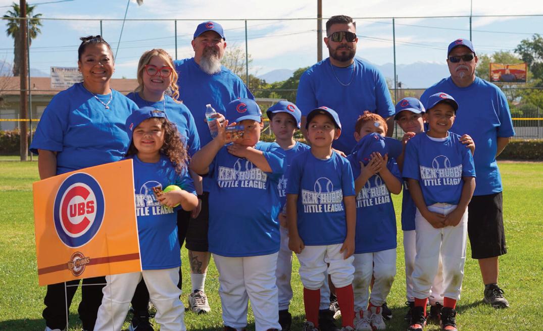 Colton Chamber of Commerce President Christina Gaitan, team manager of her grandson’s Chicago Cubs team, poses with players.