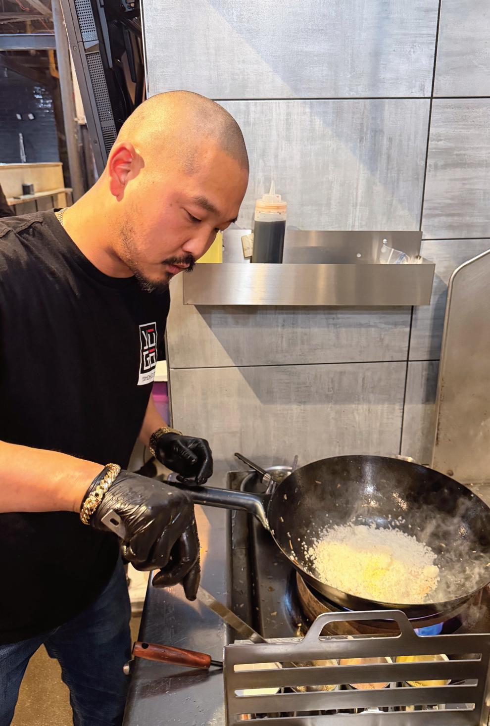 Chef and co-owner Daniel Kim prepares fried rice over high heat at Yugo Shokunin.