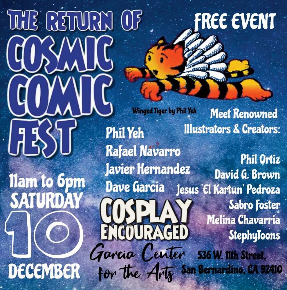The opening day of the ex hibit is December 10, during the Garcia Center ’s 2nd annual Cos mic Comic Fest Phil will pres ent a “Meet the Artist” talk at 4:00 PM that day The show will run through December 31, 2022 He will have books avail able for purchase in addition to his art
