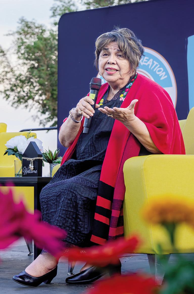 PHOTO MANNY SANDOVAL Inland Empire Community News Publisher Emeritus Gloria Macias Harrison speaks during a featured conversation at Viva La Fiesta in Rialto on Sept. 27, 2025.