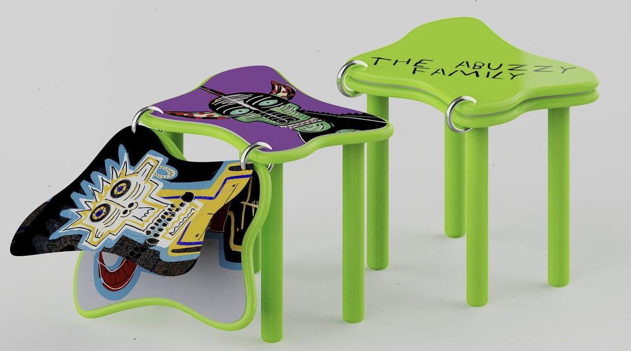 Not for skate: “’Not for Skate’ is a unique series of 100 limited-edition skateboard decks, each adorned with characters from ‘The Abuzzy Family.’ Designed as decorative pieces rather than for actual skateboarding, these decks bring the characters to life through an innovative feature: when scanned with a phone camera, each character animates in a way that reflects its unique personality. This fusion of physical art and digital technology captivated enthusiasts, leading to a complete sell-out of the collection.