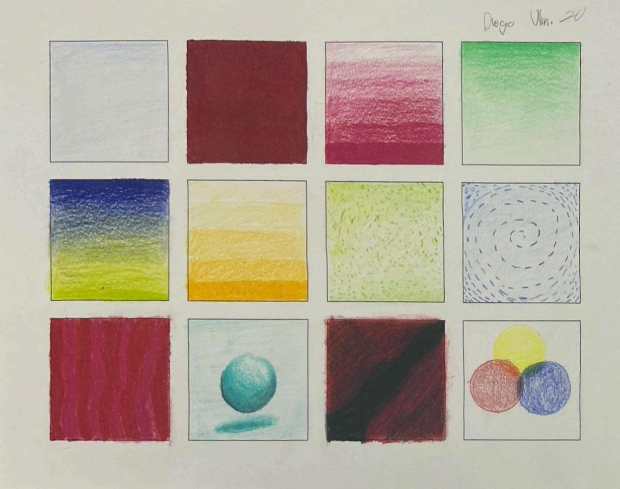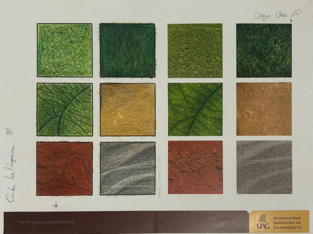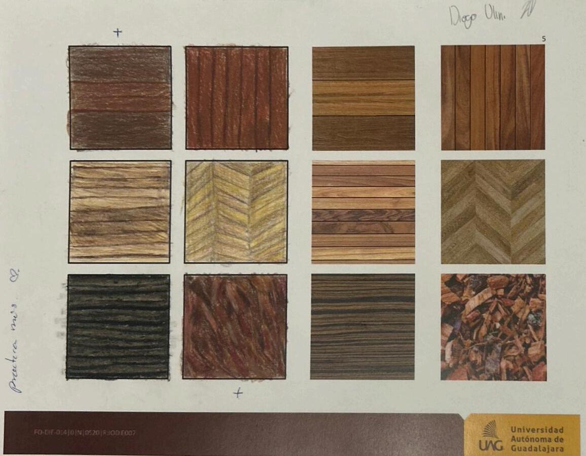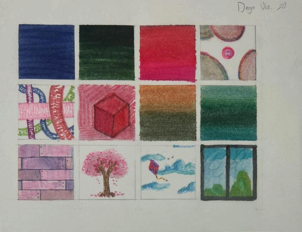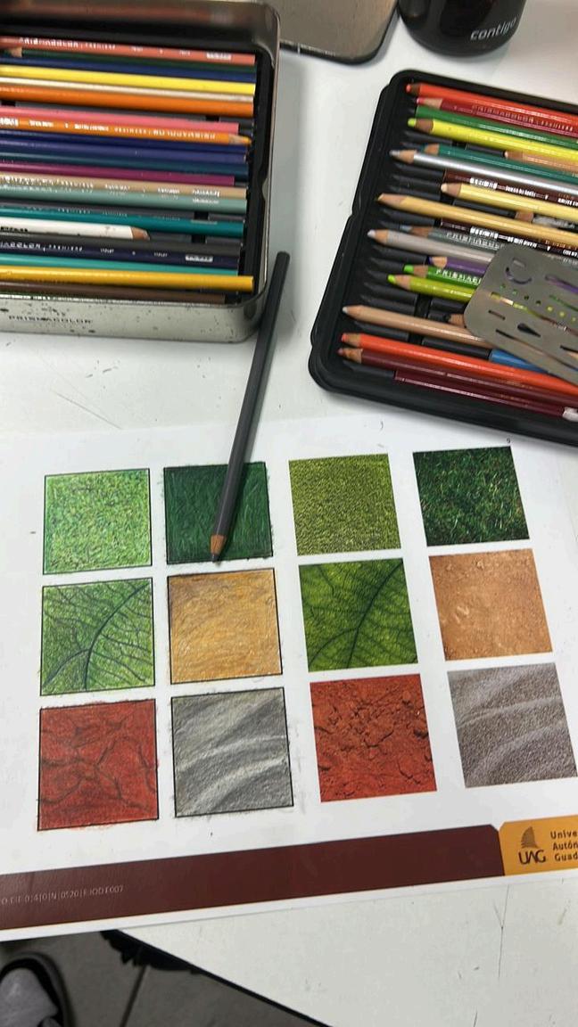 Durante las clases, trabajamos con lápices de colores Prismacolor y papel opalina. Al inicio de la actividad, recibimos una breve introducción sobre la técnica, y luego comenzamos a practicar. Nos enfocamos principalmente en trazar los módulos de manera precisa. Una de las recomendaciones clave fue mantener la uniformidad en los trazos, asegurándonos de que todos tuvieran una forma coherente y suave. Después de la entrega, realicé las correcciones sugeridas, dedicándome a ajustar los detalles y perfeccionar el difuminado, para darle un acabado más pulido al trabajo.