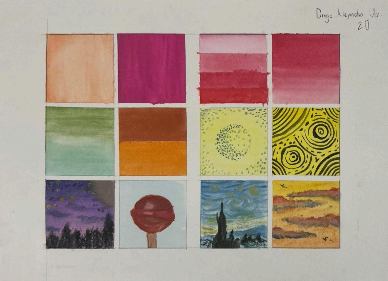 en este álbum se observan técnicas aplicadas durante los parciales, las cuales son, lápices de colores, acuarelas y marcadores, podrás observar como se realizo y mis experiencias durante el proceso.