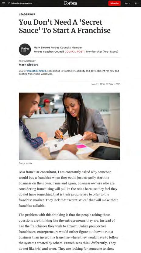 Our consultants have held executive positions at over 60 franchise companies Articles appearing in over 300 publications and over 600 live seminars and podcasts, television and radio interviews.