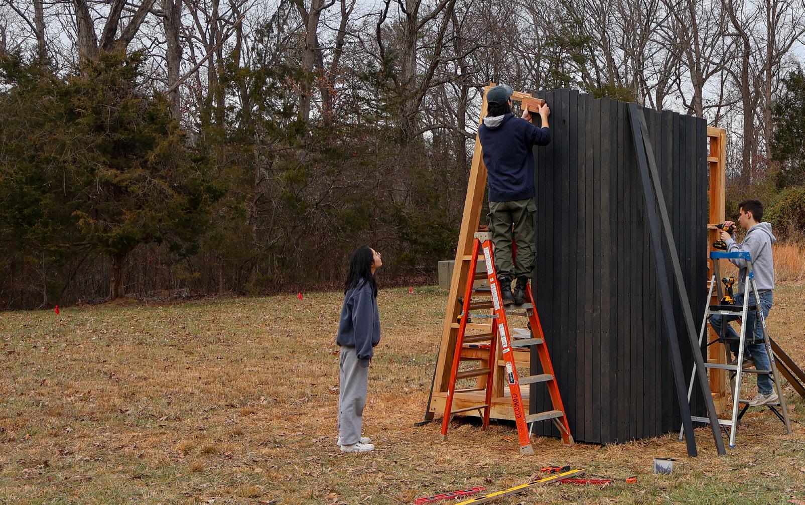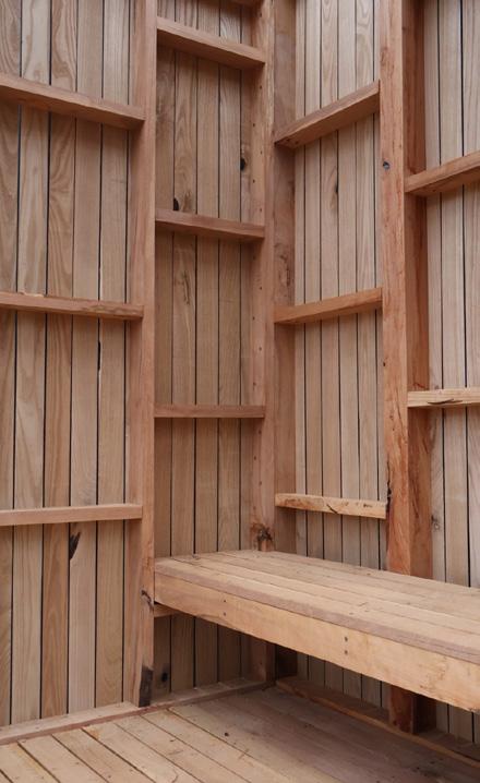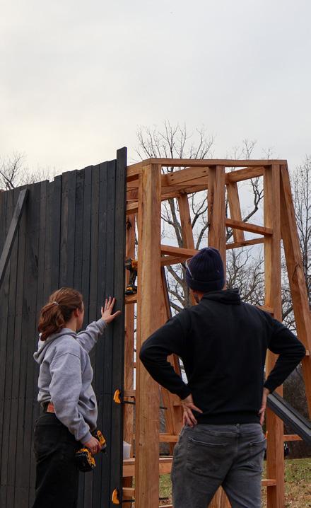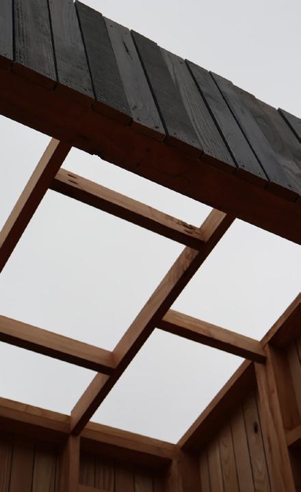Working with stakeholders at Morven and the University of Virginia, the three pavilions were synthesized into one, combining purposes of meeting and refection and considering material and structural requirements. The pavilion is constructed of lumber milled and fnished from logs cut down around U.Va., and was assembled on site. The Morven Pavilion will fnish construction in April of 2026.