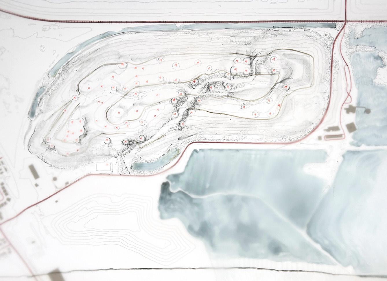 The New Jersey Meadowlands are a landscape of extraction and dumping, where landflls outnumber public spaces. This design proposal embraces its unique site conditions by converting one of the Meadowlands’ oldest landflls into a park using construction and demolition waste from New York City to design a specifc starting point and a proposed future.
