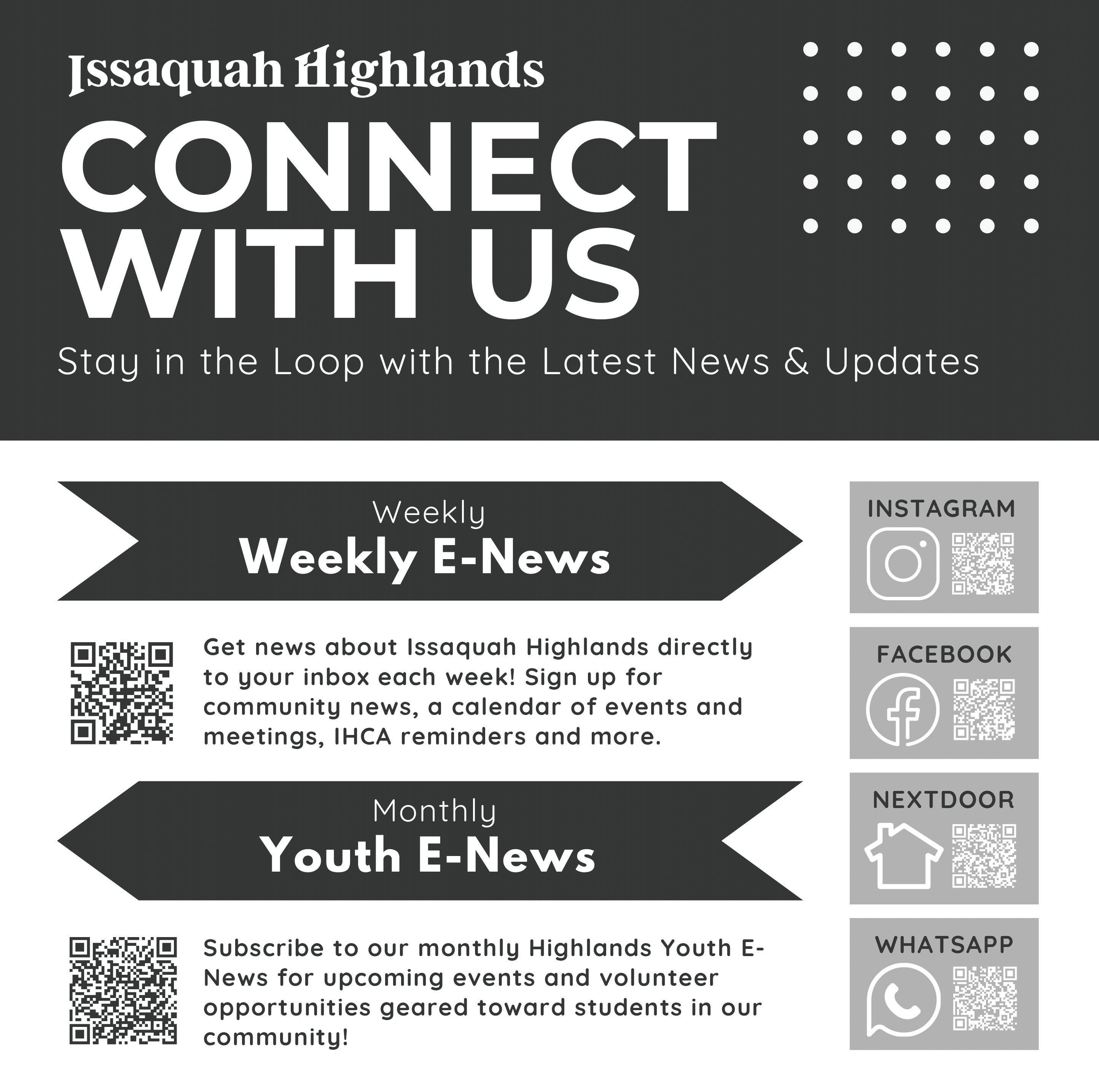 Get weekly Issaquah Highlands updates to your inbox! Subscribe at issaquahhighlands.com/news/e-news.