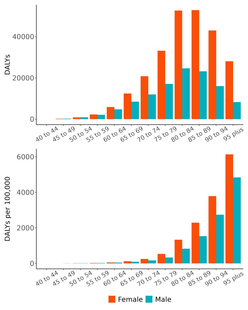 Addition of YLDs and YLLs; an overall summary measure of health loss (disease burden) from dementia