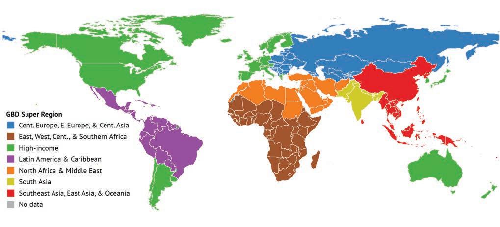 The repor t focuses on air pollution and health trends seen globally within the GBD Super Regions (countries grouped by similar cause-of-death patterns; see Figure i) and in the most populous countries . Interactive maps and figures, downloadable data, and additional resources on the State of Global Air website allow deeper exploration and visualization of air pollution levels and health impacts in individual cities, countries, and regions