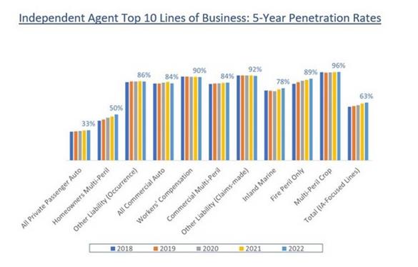 The independent agency channel is holding ground and making slow, steady gains in lines of business penetration, including homeowners, according to the Big “I" 2023 Market Share Report.
