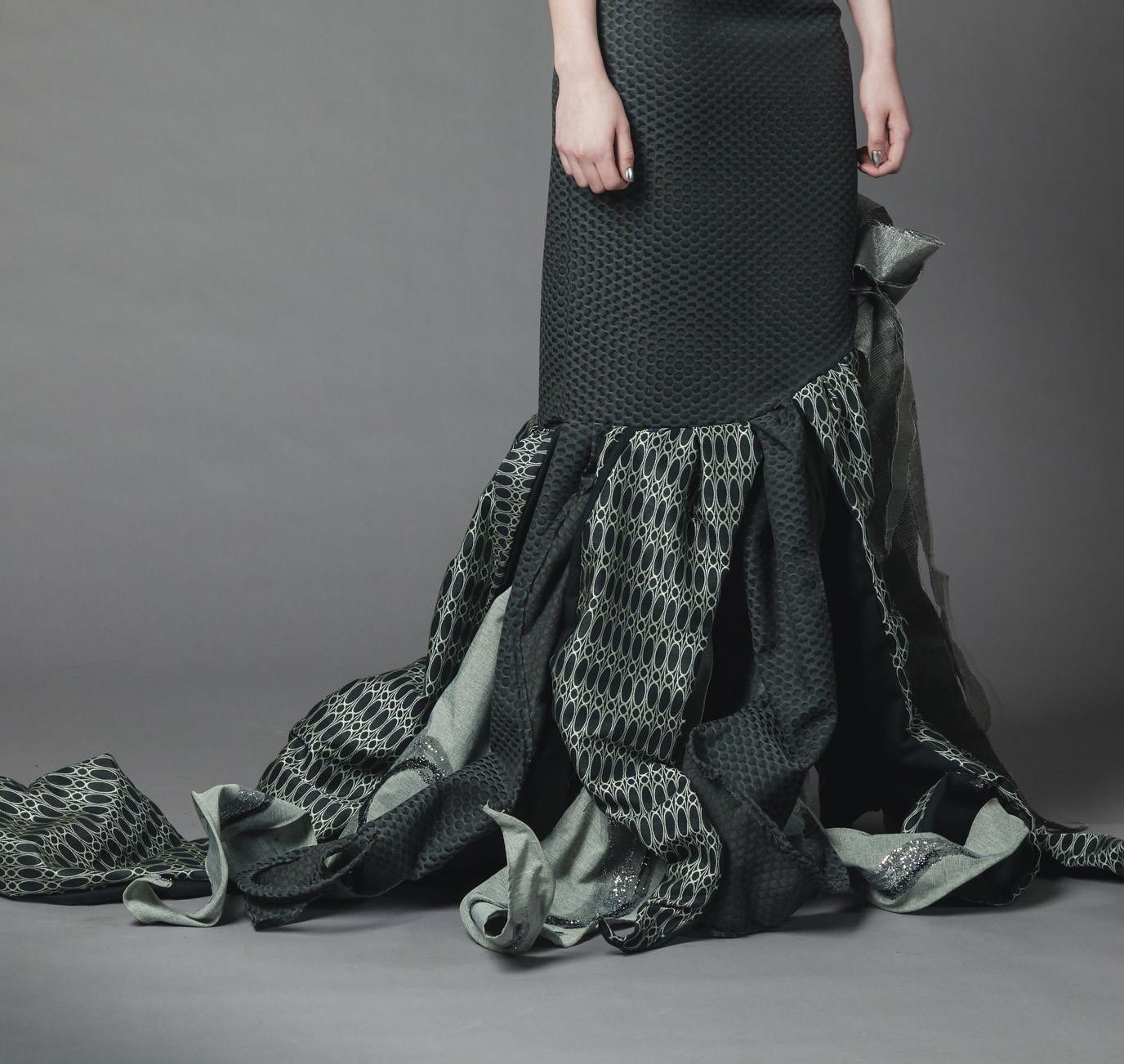 The theme was to leverage the strengths of our team and partners into our purposeful interpretation of wonderful and weirdness and we leaned fully into a theme of geometry and texture to do so. In short, we allowed the conformity and wonderfulness of math to explore into the amazing weirdness of couture resulting in a dissonance of order and chaos.