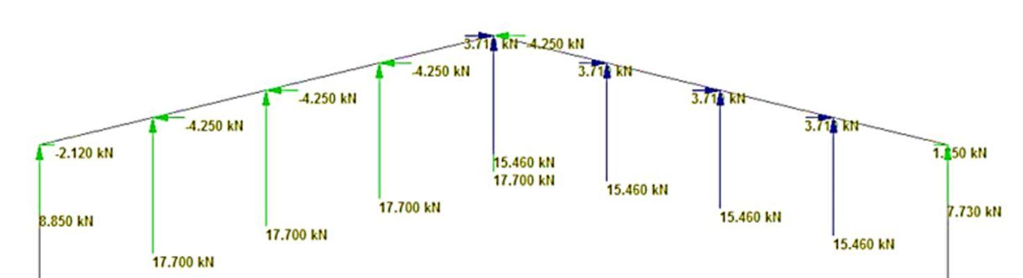 Fig. 7: Wind loads acting at the purlin positions of pre engineered steel frame for wind angle 0º