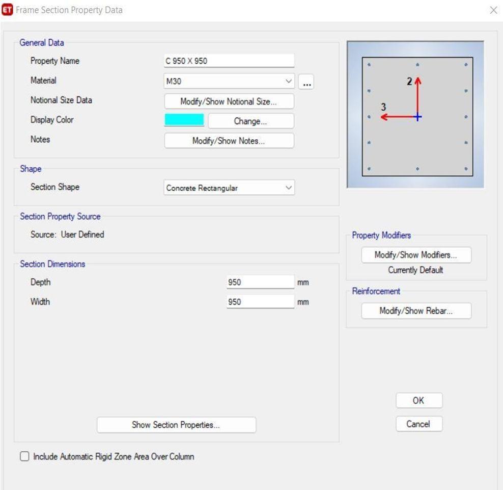 Table 2: Details of Symmetric G+25 Symmetric RCCBuilding: