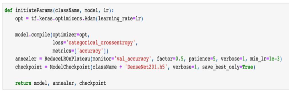 "InitiateModel" is in the second block. It requires as an input the number of classes. This approach is used for the subsequent work.