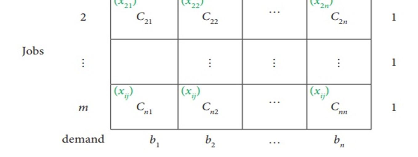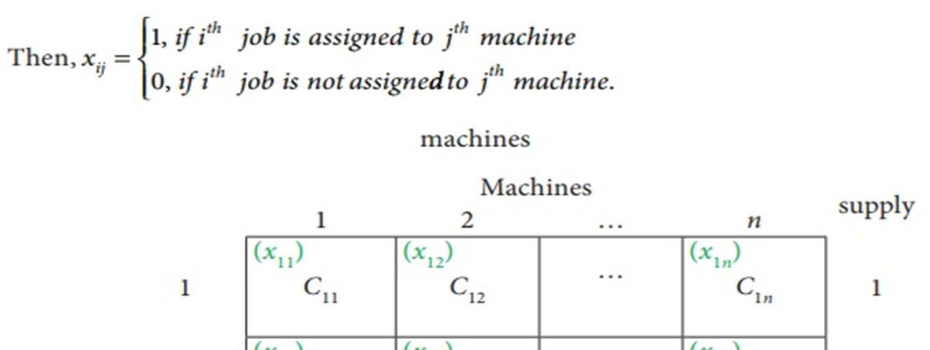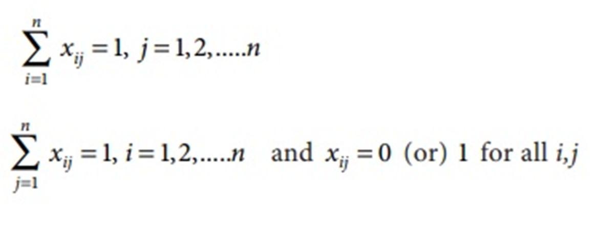 Consider the problem of assigning n jobs to n machines (one job to one machine). Let Cij be the cost of assigning ith job to the jth machine and xij represents the assignment of ith job to the jth machine.