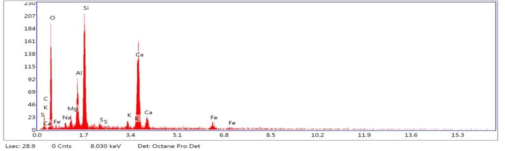 Fig 8. EDS for 0.7% of basalt fiber after 28 days curing