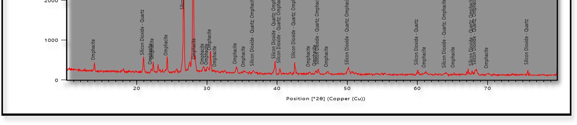 • From XRD graph, following compounds are identified are Silicon Dioxide Quartz and Omphacite