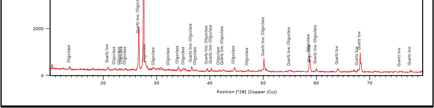 • The most abundant compound is Quartz low (O2Si1) which is at 100% peak at 27.53 degree