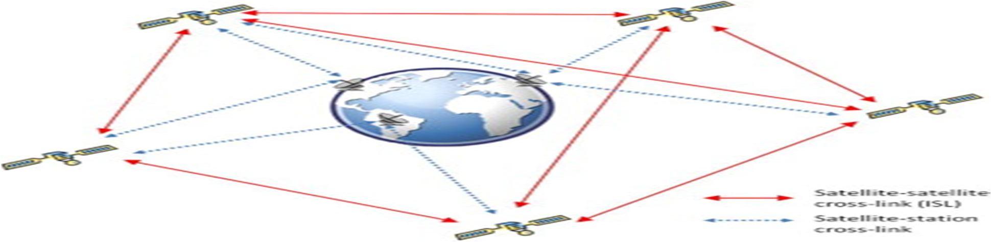 Connections between satellites(Fig.6) can be used to transfer information, which might shorten the ephemeris update interval and improve navigation (Gong et al. 2019). One of the advantages of the ISL system is the potential to establish links outside of the atmosphere, and thus the ISL measurements are not affected by atmospheric delays and they are also less impacted by multipath and interference than GNSS measurements. It has also been suggested that satellites could determine their orbit autonomously by processing ISL measurements. Therefore, ISLs could make a great contribution to onboard processing and represent a step towards fully autonomous constellations in the future.