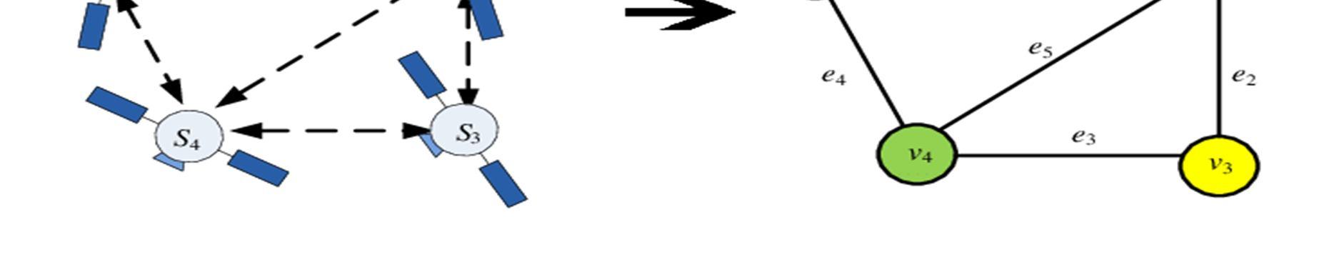 In the representation of the graph, the satellites are considered as the vertices and the path that connect the satellites are considered here as edges.