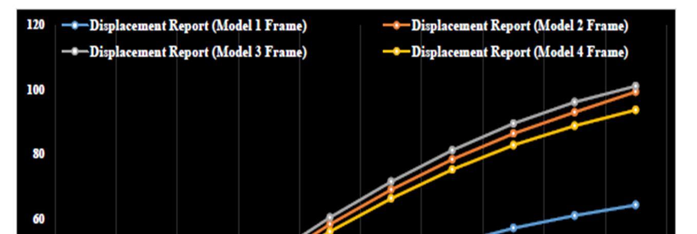 3) The lateral deflection for building with CASE I, shear wall is reduced as in comparison to all models. Hence, it may be stated that building with CASE-I shear wall is much more efficient than all other models with shear wall.