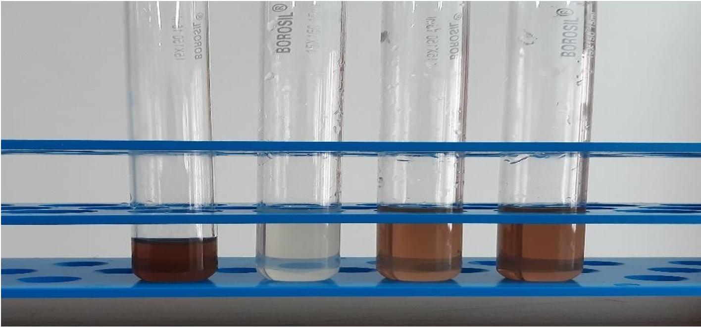 The freshly prepared Ag nanoparticles are mixed with the milli molar solution of heavy metal salts such as lead nitrate, mercury chloride and Nickle sulfate for their quantitative detection. Figure 15, shows instant vanishing of color in the test tube containing mercury. Since the synthesized nanoparticles are sensitive to mercury, there is change in color of the solution, this had led to the development of biosensor