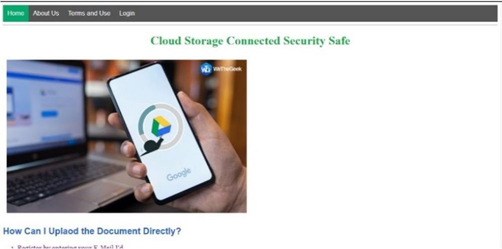 The elements that can assist our work will be Document Management System, Cloud storage and Use of Electronic device i.e., scanner and an online portal for file to be transferred from one's device to the google drive. Here the privacy of user is a main responsibility for us so we tried to make it end to end encrypted. No other person can access this file without the permission of user until the person uses the same Gmail ID. Also, there will be a virtual numpad which enhances the security of one's data. The Document Management System is a very powerful tool in managing the documents of large organizations. The Document management systems architectures, advantages, and application are also important. documents stored as hard copies, or on microfilm absorbs time. A DMS increases creates electronic images of documents and stores them centrally. Less time is spent locating the documents as they can be retrieved without leaving a desk. DMS users can also access other systems available from the desktop at the same time as retrieving documents. Public identity-based protocol is necessary for secure data storage, which supports the identity privacy protection of multiple users. Google Drive is a cloud storage and collaboration service used by hundreds of millions of users around the world. Quick Access is a new feature in Google Drive that surfaces the most relevant documents when a user visits the home screen. So when we upload the Document through our online portal then it will get displayed on the home screen of google drive. We cannot realistically expect users to accept security software that asks them to suspend or even delay their access to instant messaging, downloadable executables, or electronic mail. Documents that can be uploaded will be in JPG, JPEG.