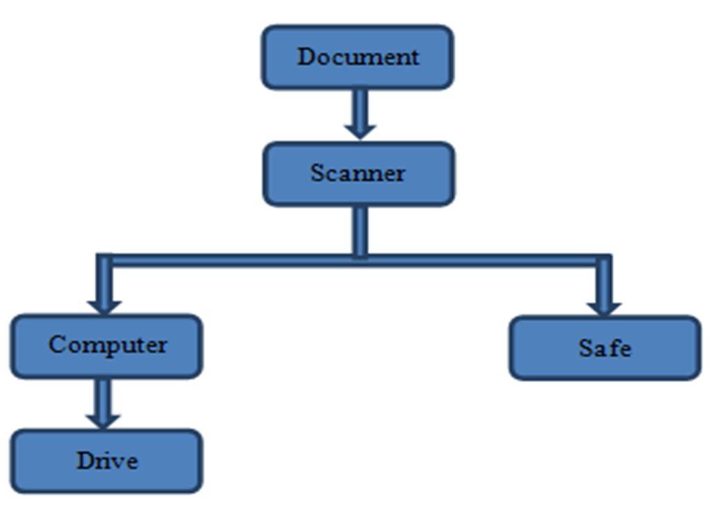 1) Security Safe: It is where the original hard copy of the document is kept while ensuring its safety. Scanner (Fujitsu ScanSnap iX100 Wireless Mobile Scanner) - This device will scan the document and will send it to the user’s device. It is a roller scanner and has an inbuilt software for transfer of files and can be seen in fig 1