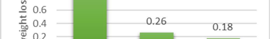 4) Acid Attack Test: Acid Exposure Hydrochloric acid (HCL) of 1% concentration was considered to be representative of aggressive sewer environments and 1% Hydrochloric acid (HCL) solution used to investigate the acid resistance. Concrete cube 150 × 150 × 150 mm samples were immersed in 1% Hydrochloric acid solution for 60days and percentage weight loss after acid attack immersion is recorded.