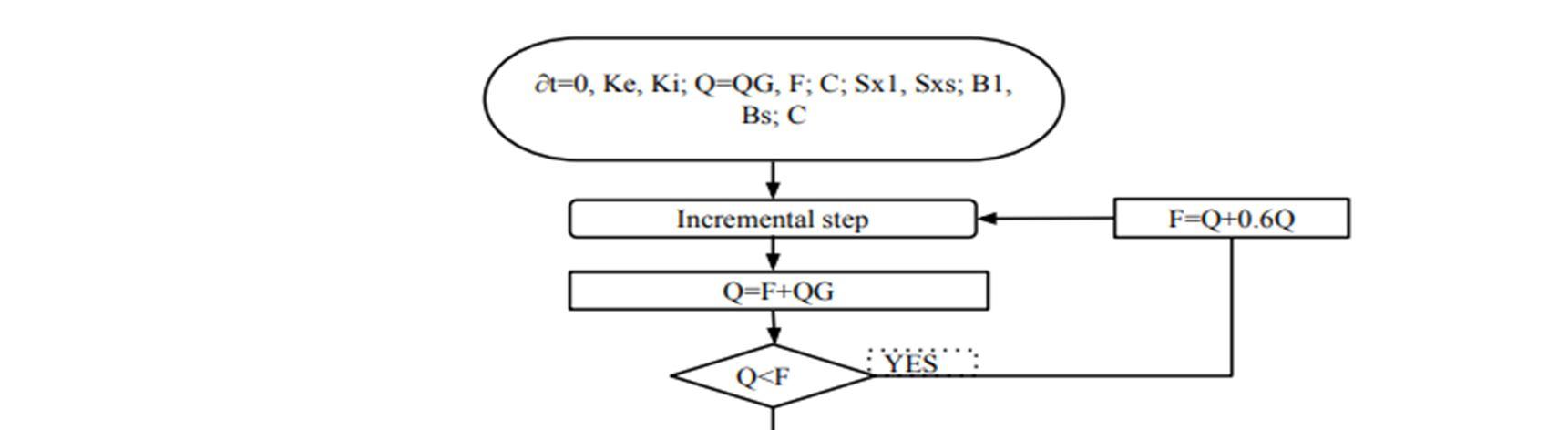 The first step of the algorithm is the incremental step which is significantly different from subsequent steps. In this step the analysis of structure is done on the only gravity load QG. Before this step all the factors are set to be zero. If the Q < F then the increment in the Q is 0.6Q which is new F. such iterative step is first step in nan linear static analysis.