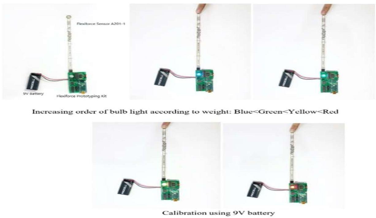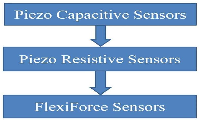 Flexi Force sensor (here used is A201) are the piezoresistive sensors. When the load is applied on the sensing area of the sensor, the resistance value changes in the inverse proportion to the force applied. It can be used for static and dynamic frce measurement. When the piezoelectric sensor is directly connected to ADC of Arduino with using resistor the output is very low, it gives maximum value of 2.97V at weight of 2000g.