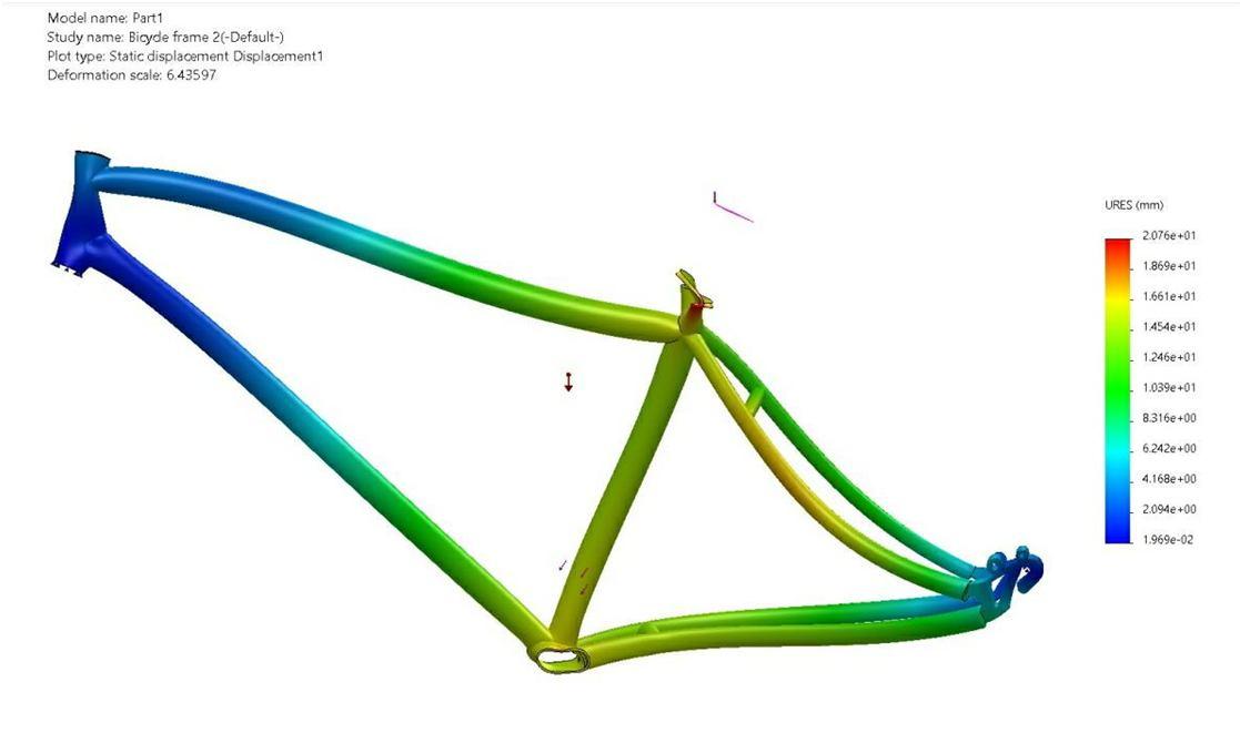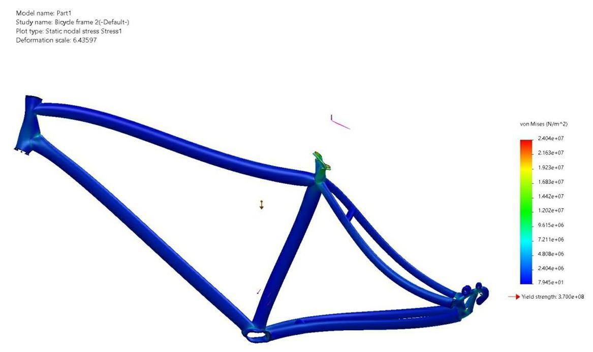 This software is structural integrity of the bicycle frame of the design is verified by comparing the analysis result with the standard values of the materials.