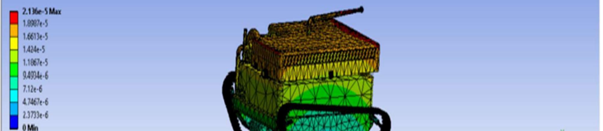 2) Analysis of Mini Fire Fighting Robot: Total deformation is the deformation option that you can see all the deformation results related to your model, in three coordinates (X, Y, Z). Directional: In directional deformation, you can select a coordinate (X, Y, Z) to see the deformation result of your physical model in this direction.