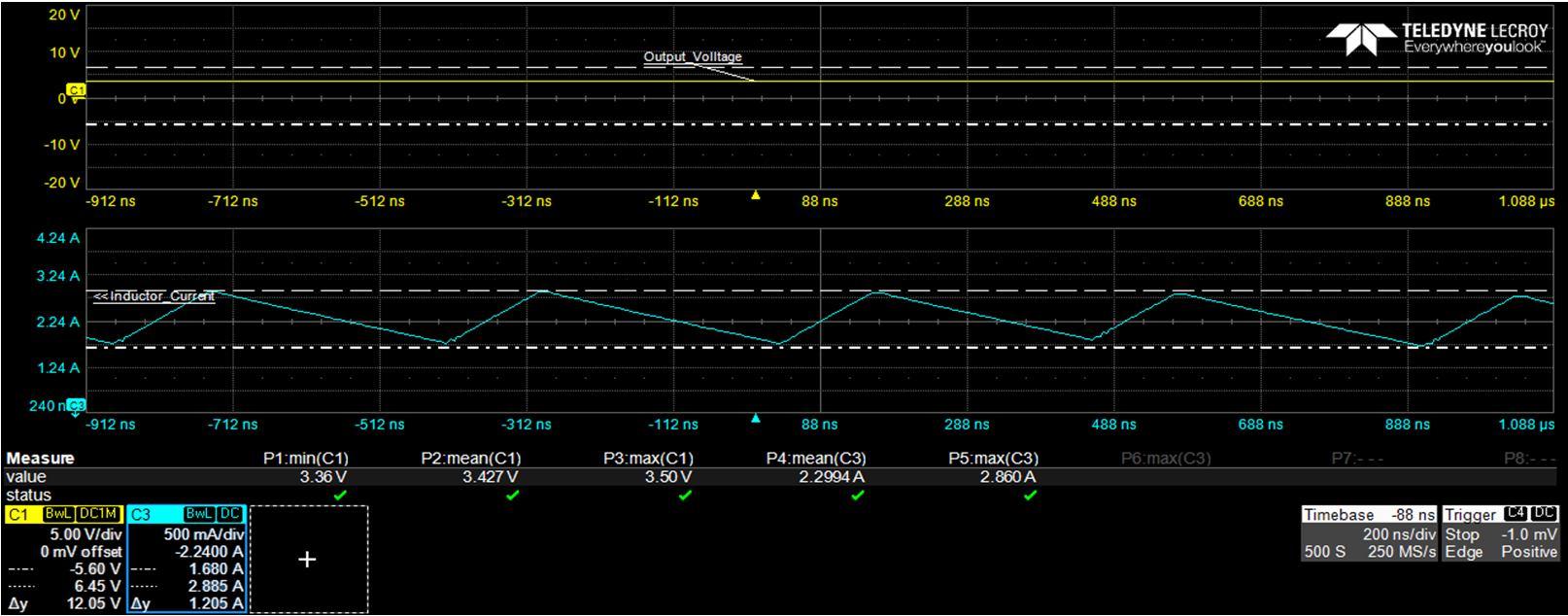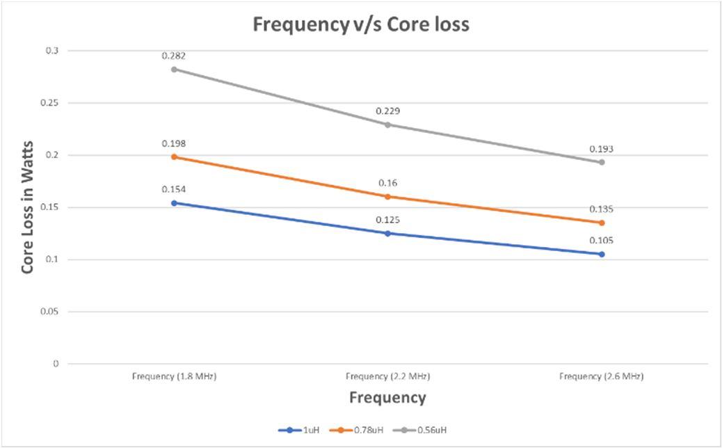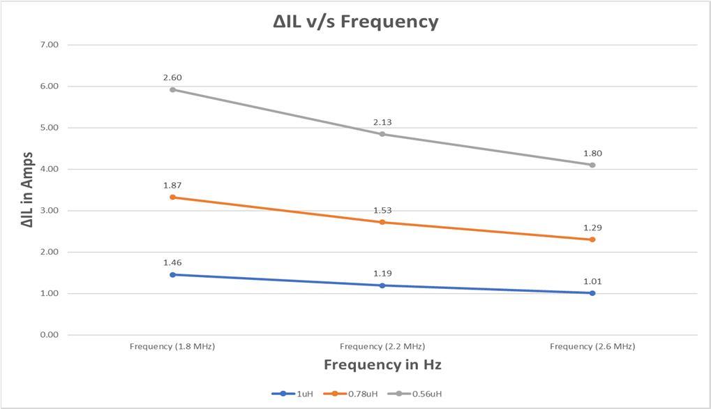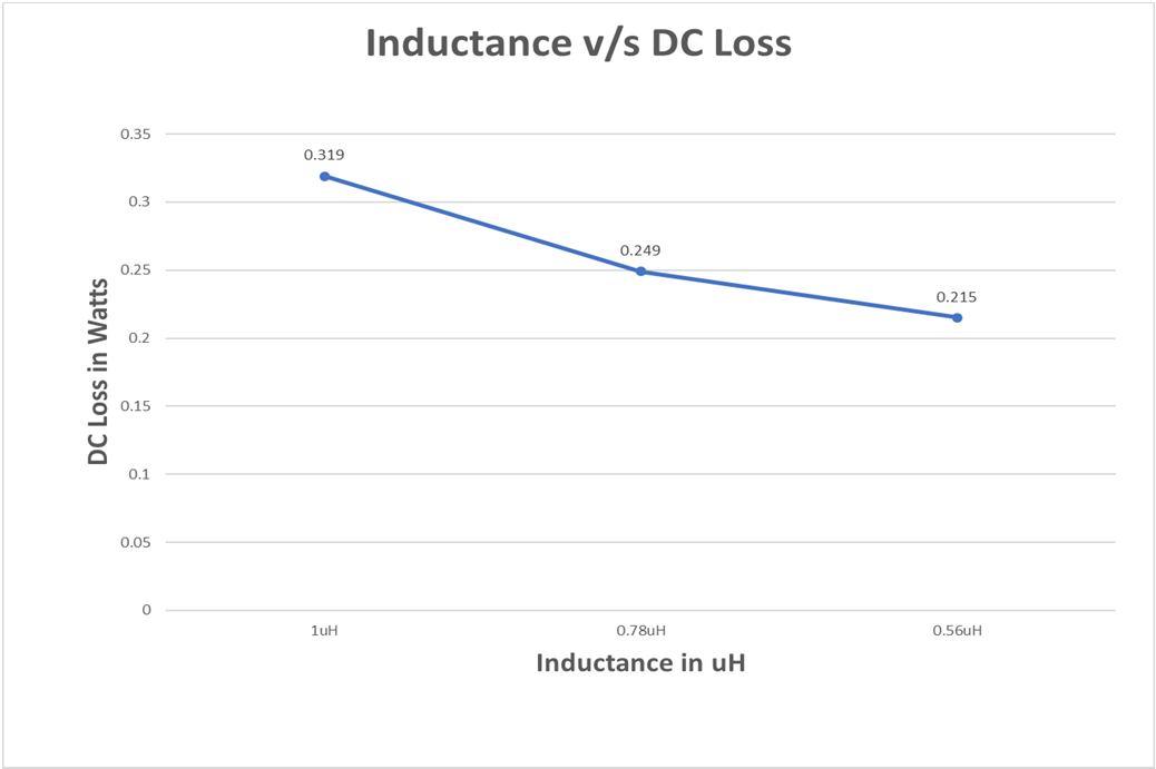 The above table depicts the comparison of three different inductance values for the same design We can see a significant decrease in the ripple current with increase the inductance value also decreasing the total power loss. Comparatively the cost of 2uH inductor is lesser than 1uH which makes is more feasible to selection.