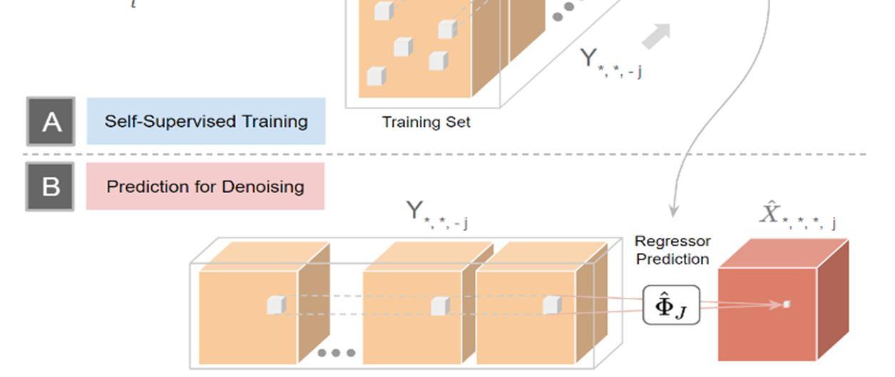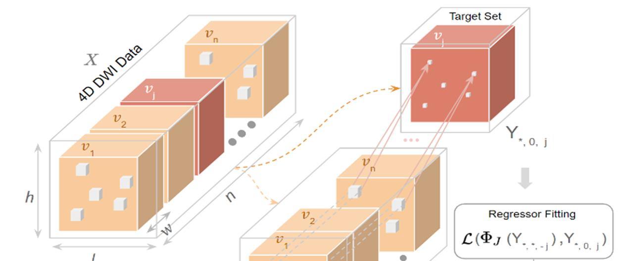 Fig. 2 The above figure demonstrates the working of Patch2Self. The idea is to build a new regressor for denoising each 3D volume of the 4D diffusion data