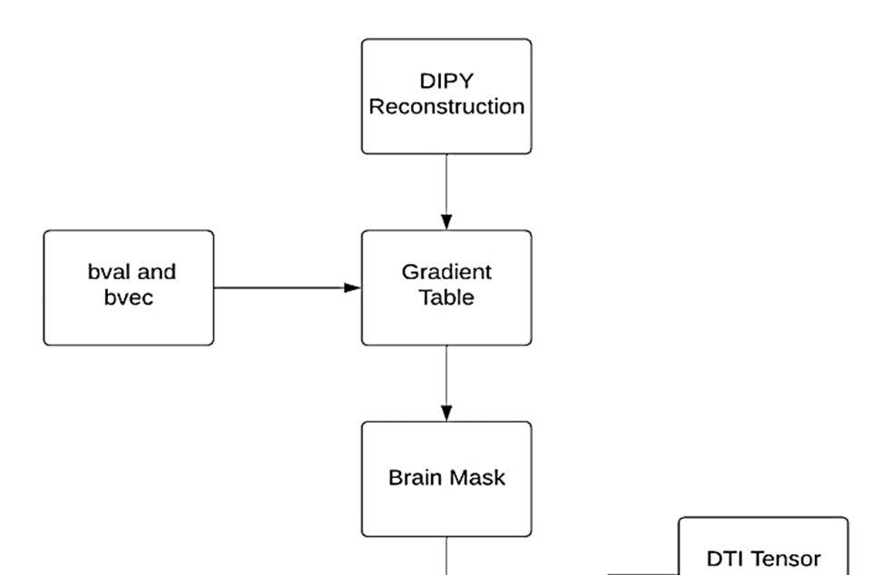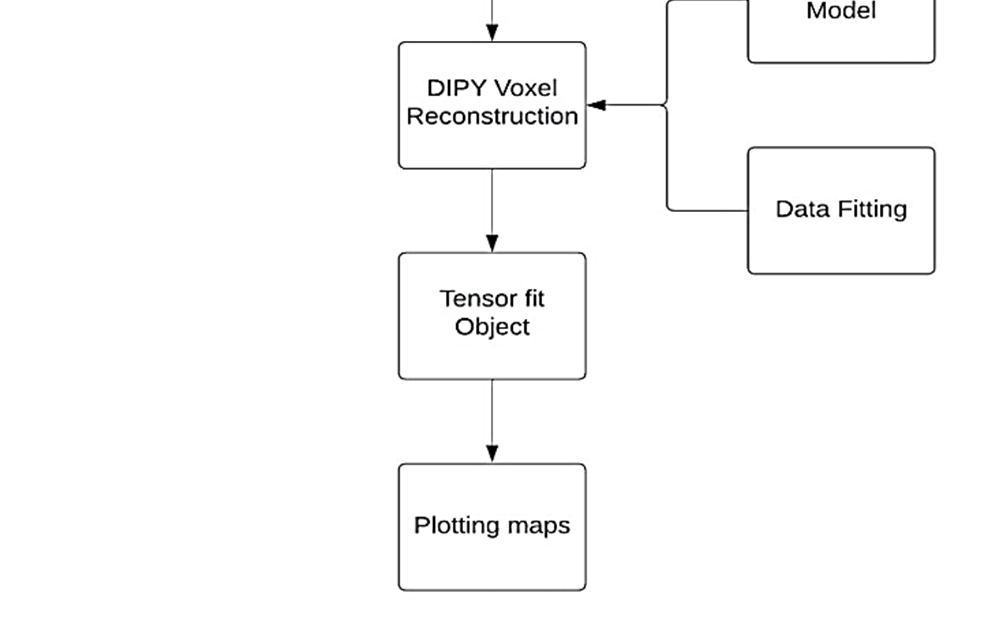 In this paper, we have used DIPY, library that is a 3D or 4D imaging technique. which can help in statistical analysis, machine learning, and the visualisation of medical images. It also includes specialised approaches for computational anatomy, such as diffusion and structural imaging. Through this library, we can reconstruct the structural image of the brain. Firstly, we use the Dipy library to reconstruct the dMRI image. then go on to extract the data from the dataset. Then we will create a gradient table by loading b values and b vectors, which summarises the diffusion parameters. Second, we generate a brain mask for the taken image to avoid computation on the background of the image. Thirdly, we try to reconstruct the voxel in two steps: the first is to use the tensor model of DTI; the second is to fit the data to obtain the tensorfit object, which contains parameters and standard diffusion DTI metrics as object attributes; and finally, we plot all the required maps using Matplotlib.
