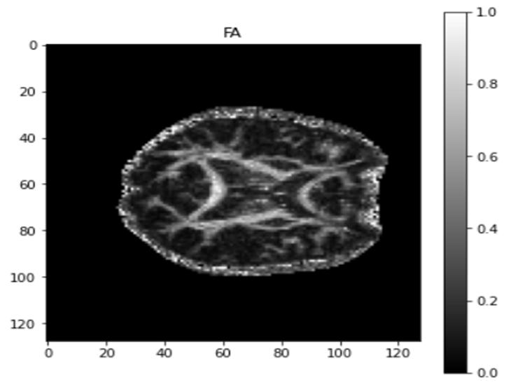 On an anatomical map, the FA of all of the voxels in the brain can be superimposed; voxels with high values are depicted as white, while voxels with low values are represented as black. The FA has been used as the principal measure of white matter integrity in several studies.