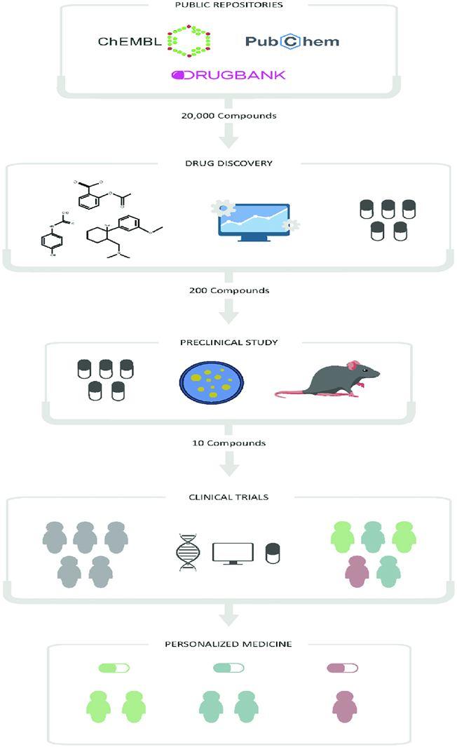 1) Drug Discovery: The identification and confirmation of a disease target and the discovery and development of a chemical compound to interact with that target can be summed up as the drug discovery process. Drug development begins with the identification of an illness with well defined symptoms that lower quality of life. A desirable drug is typically defined as a chemical (which could be a simple molecule or a sophisticated protein) or chemical combination that lessens symptoms without having a significant negative impact on the patient.
