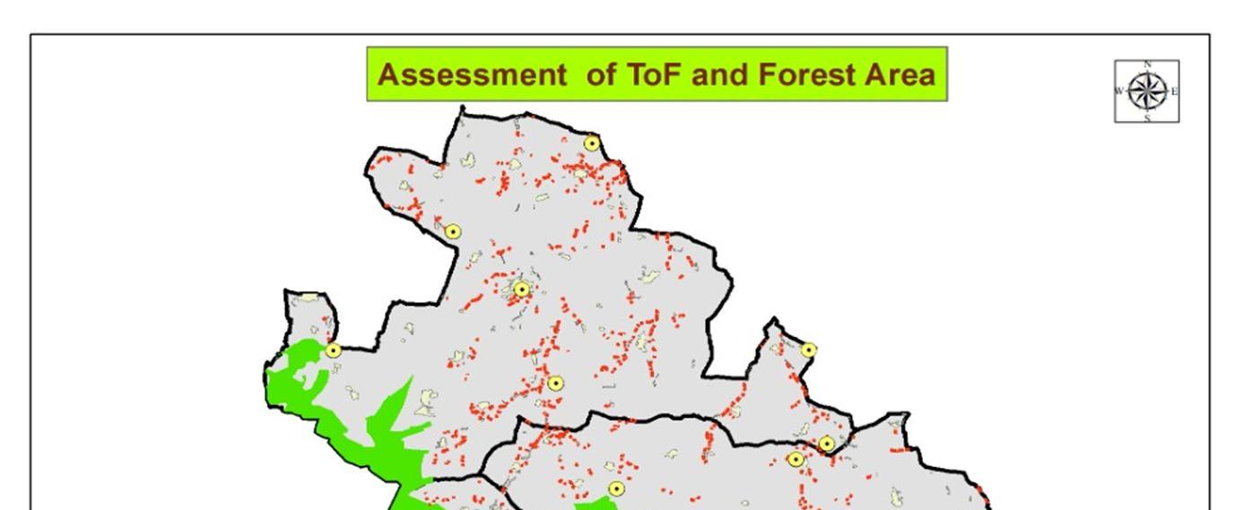 Trees outside the forest (TOF), defined as 'trees growing outside the forest'. In India, trees growing outside recorded forest area (RFA) are called TOF. Trees outside forest (TOF) are found in various forms in rural and urban landscapes of the country such as small woodlots, block plantations, trees along linear features like roads, canals, embankments, etc. TOF plays an important role in the livelihood of rural and urban people of the country. They also act as important sources of wood and fuel wood, contribute to carbon sequestration and conservation of biodiversity, provide habitat for wildlife, stabilize microclimate, etc. They contribute significantly to sustainable agriculture, food security and rural household economy. They provide many of the same products and services as forests. They protect crops and soil from water and wind erosion, thus combating drought and desertification and protecting water resources. TOF in India has emerged as a major source of wood-based industries including plywood and wood panel industries. TOF resources are not only important from a national perspective but are part of strategies to deal with environmental problems at the global level. An accurate assessment of forest and tree resources is essential for formulating a sound policy for forest sector. Accurate data and up-to-date information on forest cover and extent of growing forest/tree stock and trends in its changes are fundamental elements for policy and planning purposes. Common tree resources exist outside the notified forest areas of our country, called 'trees outside forest' (TOF). These are small woodlots and block plantations, vegetation along drains and natural vegetation on community/private/government lands, trees and urban areas with linear features like roads, canal embankments etc. Traditionally, this has not been detected and little quantitative information exists about TOF. However, recently there has been a lot of interest in TOF worldwide. Besides supporting the rural economy, these trees are now a source of substantial forest produce.TOF has traditionally contributed to various wood and non-wood needs of households and Industries These trees increase soil fertility, provide food security, yield, prevent water and wind erosion, pulp, fuel wood, lumber etc.