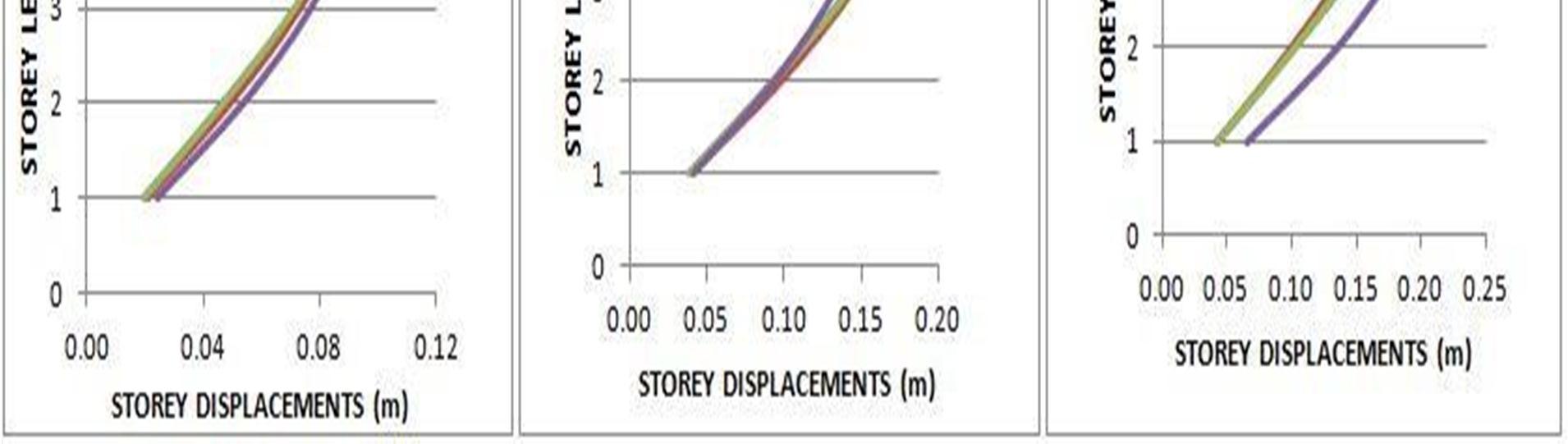 Fig 8. Storey displacements of 12 storey model for 6 deformation levels