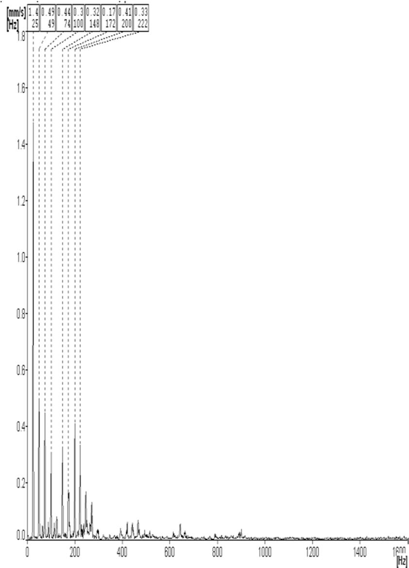 2) Frequency Spectrum of Unbalance of 42Gram at a Radius of 45 mm in Rotor